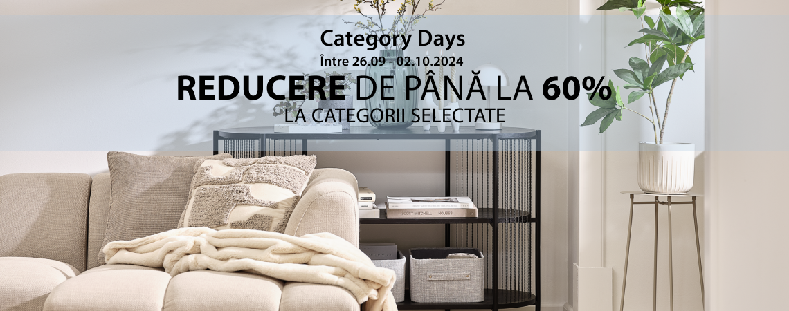 Puteți economisi până la 60% la o mulțime de categorii selectate. Ofertele sunt valabile de joi 26.09 - miercuri 02.10.2024.