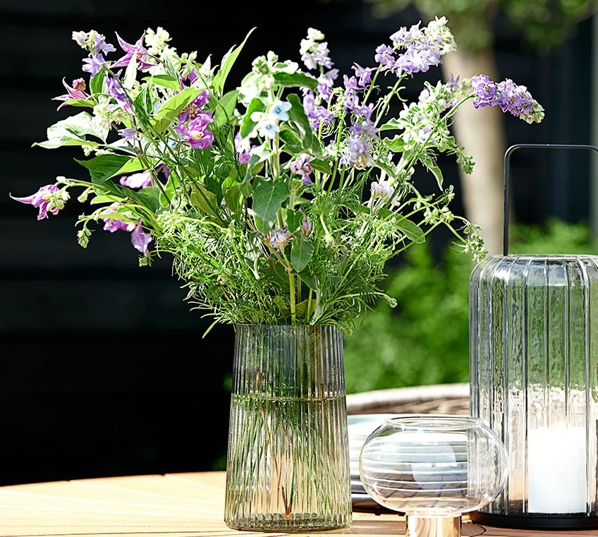O vază transparentă are o un aspect lejer și evidențiază frumusețea pe care florile proaspete o aduc într-o cameră.