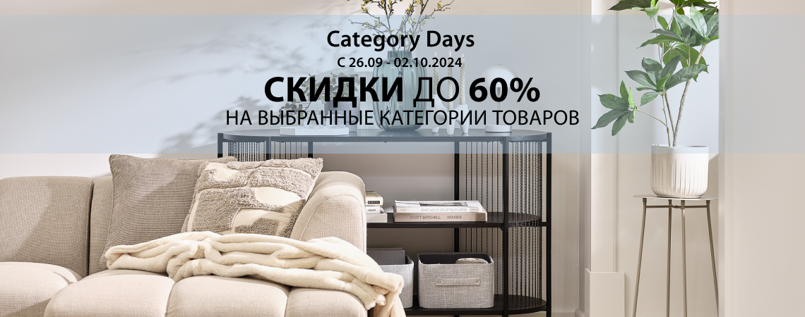 Вы можете сэкономить до 60% на многих выбранных категориях. Предложение действует с четверг 26.09 по среду 02.10.2024.